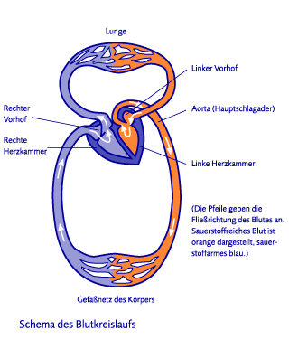 Herzhälfte besteht aus zwei Herzhöhlen (Vorhof und Kammer). Zwischen Vorhof und Kammer und am Übergang zum Gefäßsystem befinden sich die Herzklappen. Ist der Herzmuskel entspannt, füllen sich die Herzhöhlen mit Blut. Spannt er sich dann an, wird das Blut aus den Herzhöhlen in das Gefäßsystem des Körpers bzw. der Lunge gepumpt (siehe auch 2.).